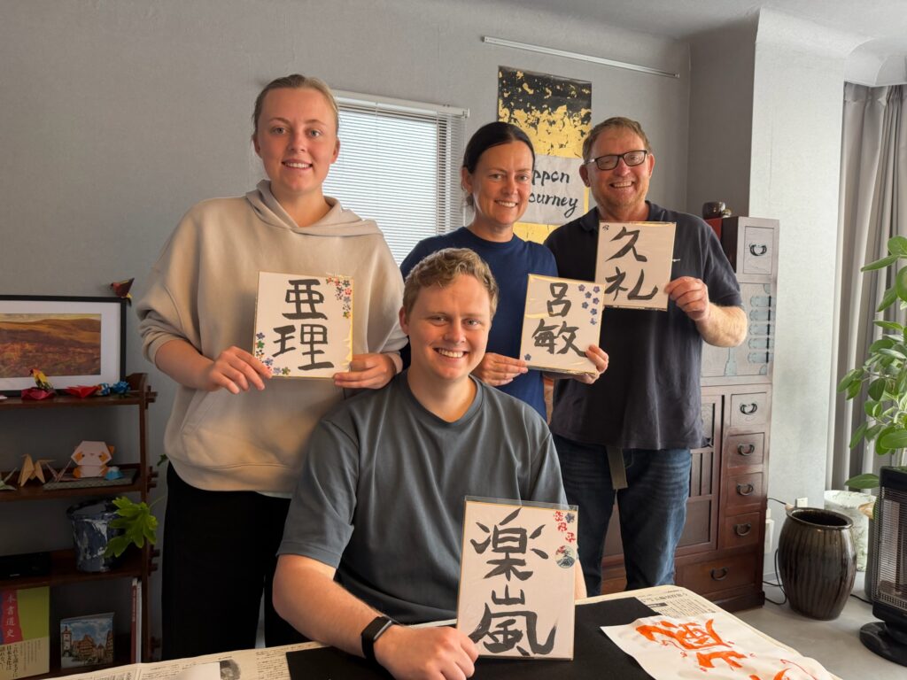 Using a high-quality brush crafted in Hiroshima, you’ll practice the basics and create your own Kanji artwork, such as your name or a meaningful word.