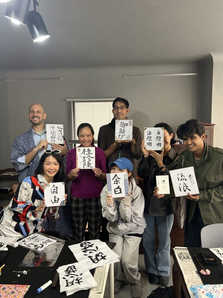 In the final stage, your calligraphy is turned into a special souvenir, such as a T-shirt or fan, to take home. The serene studio is also great for photos, making this experience perfect for couples, families, and solo travelers.