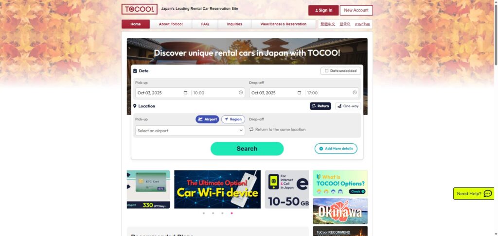 日本全国を自由に旅したい訪日観光客の皆さんにおすすめなのが、レンタカー予約サイト「ToCoo!」!